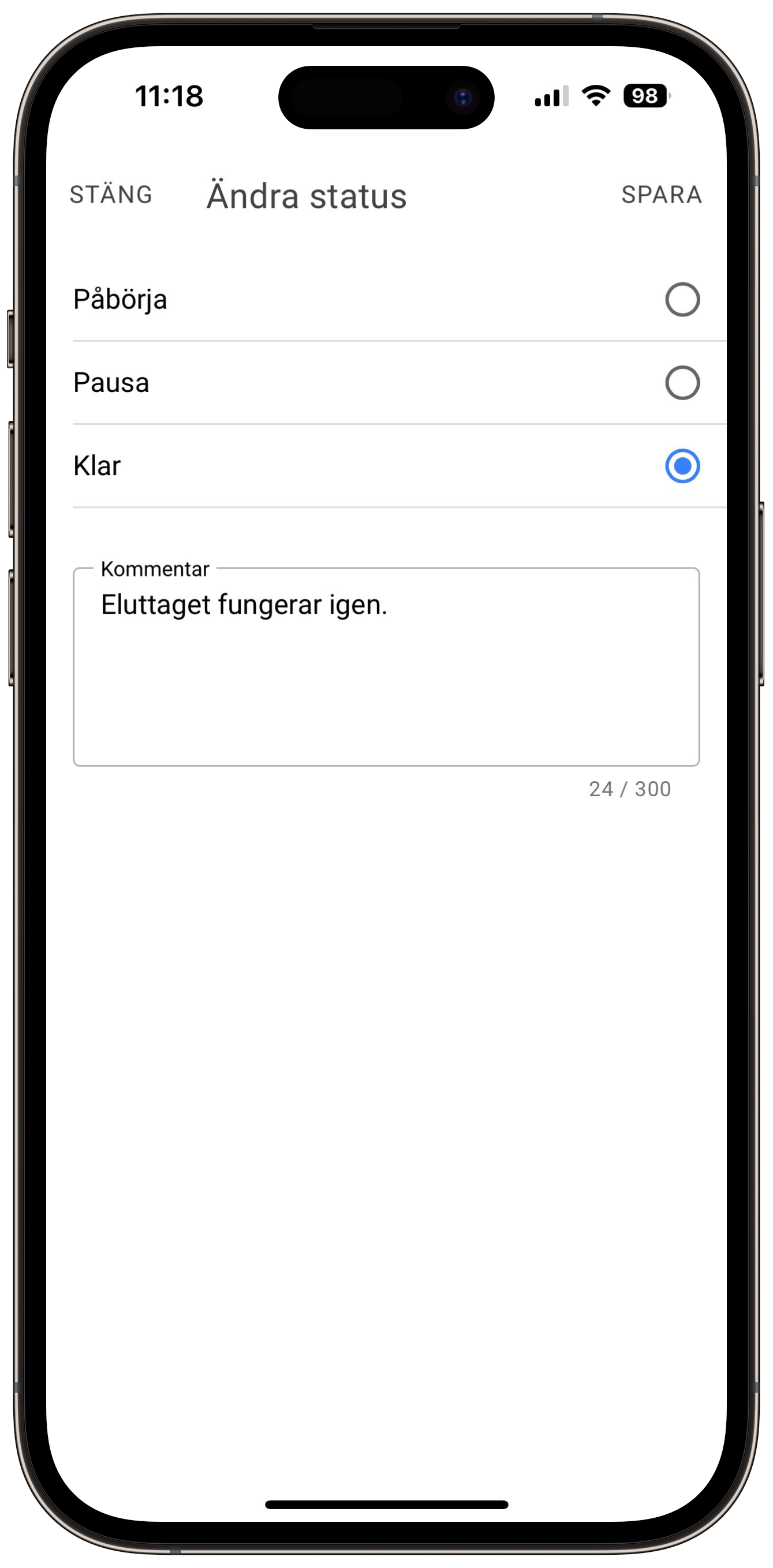 Markera ärendet som klart.