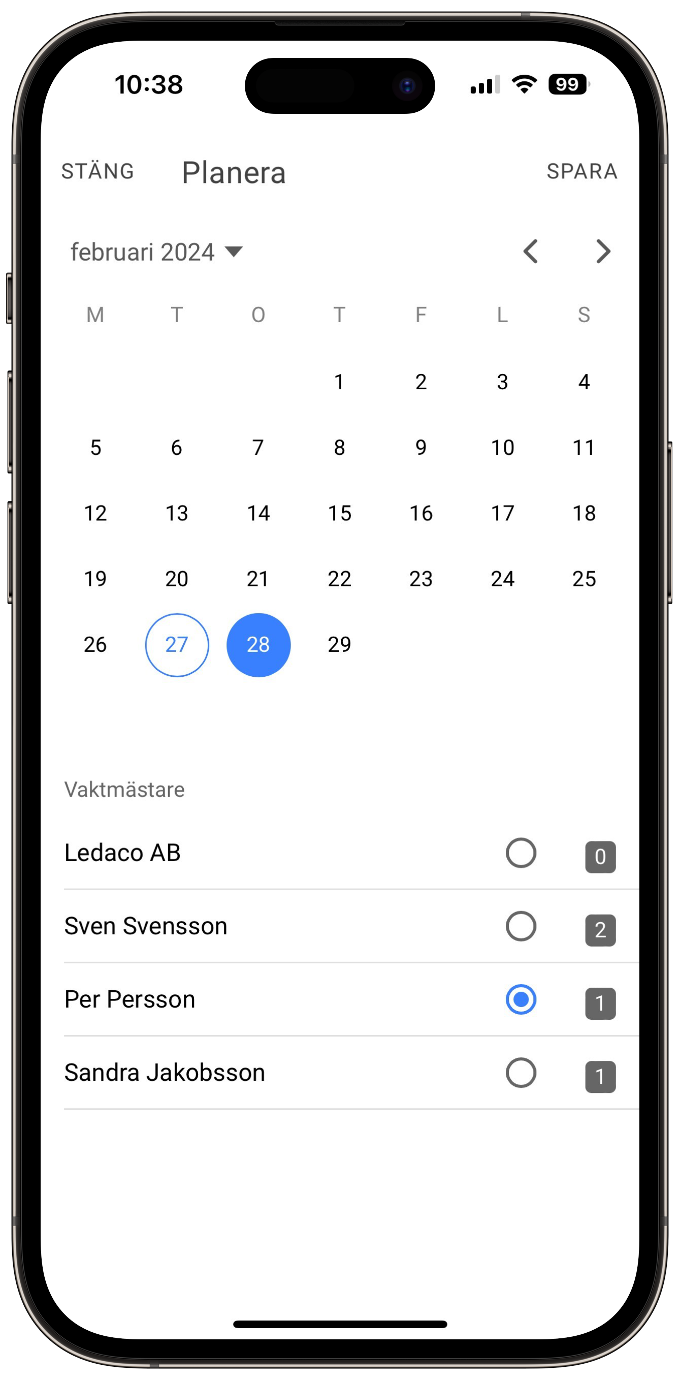 Med arbetsschemat kan vaktmästaren få en överblick över sina ärenden.