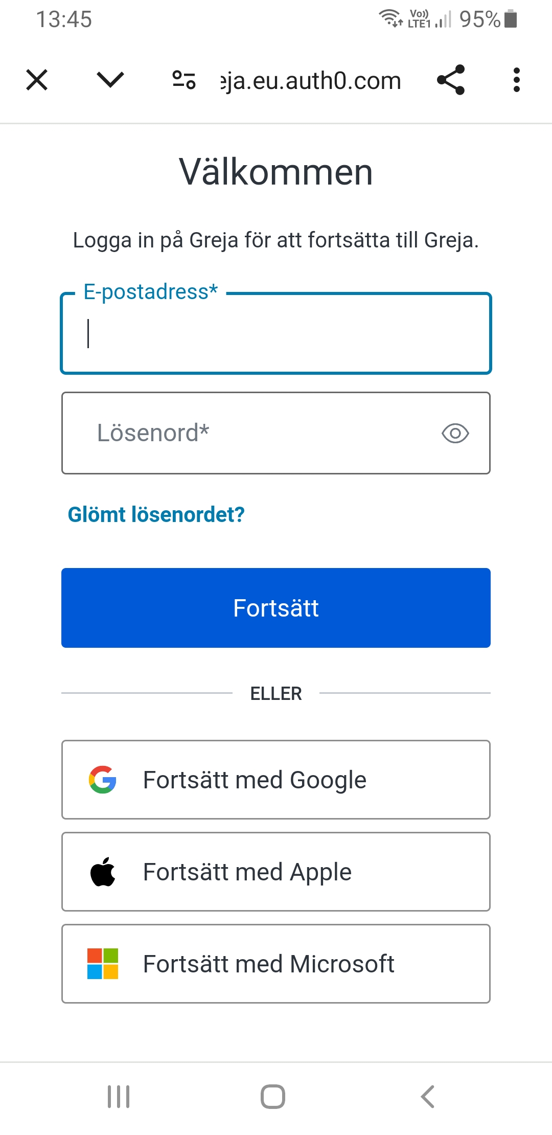 Öppna appen i din telefon och tryck på knappen "Logga in".