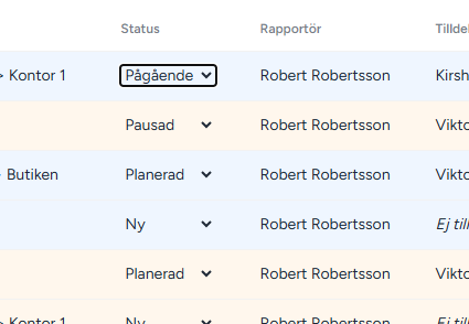 Ändra status från ärendelistanNu kan du ändra status på ett ärende direkt från ärendelistan utan att öppna dem.