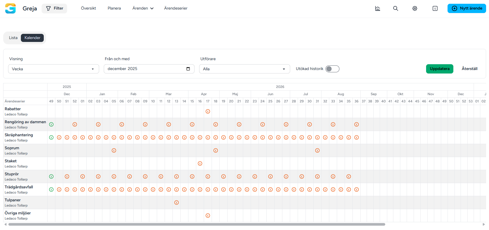 Kalenderöversikt för serierDenna nya funktion gör det möjligt att se alla återkommande ärenden i en tydlig kalender, vilket ger bättre överblick och enklare planering.