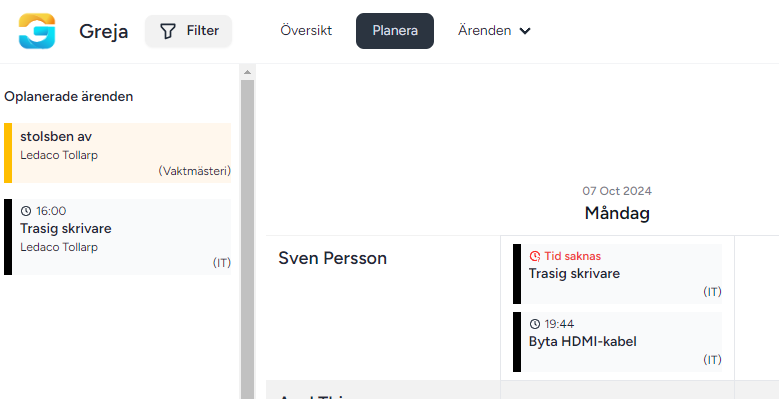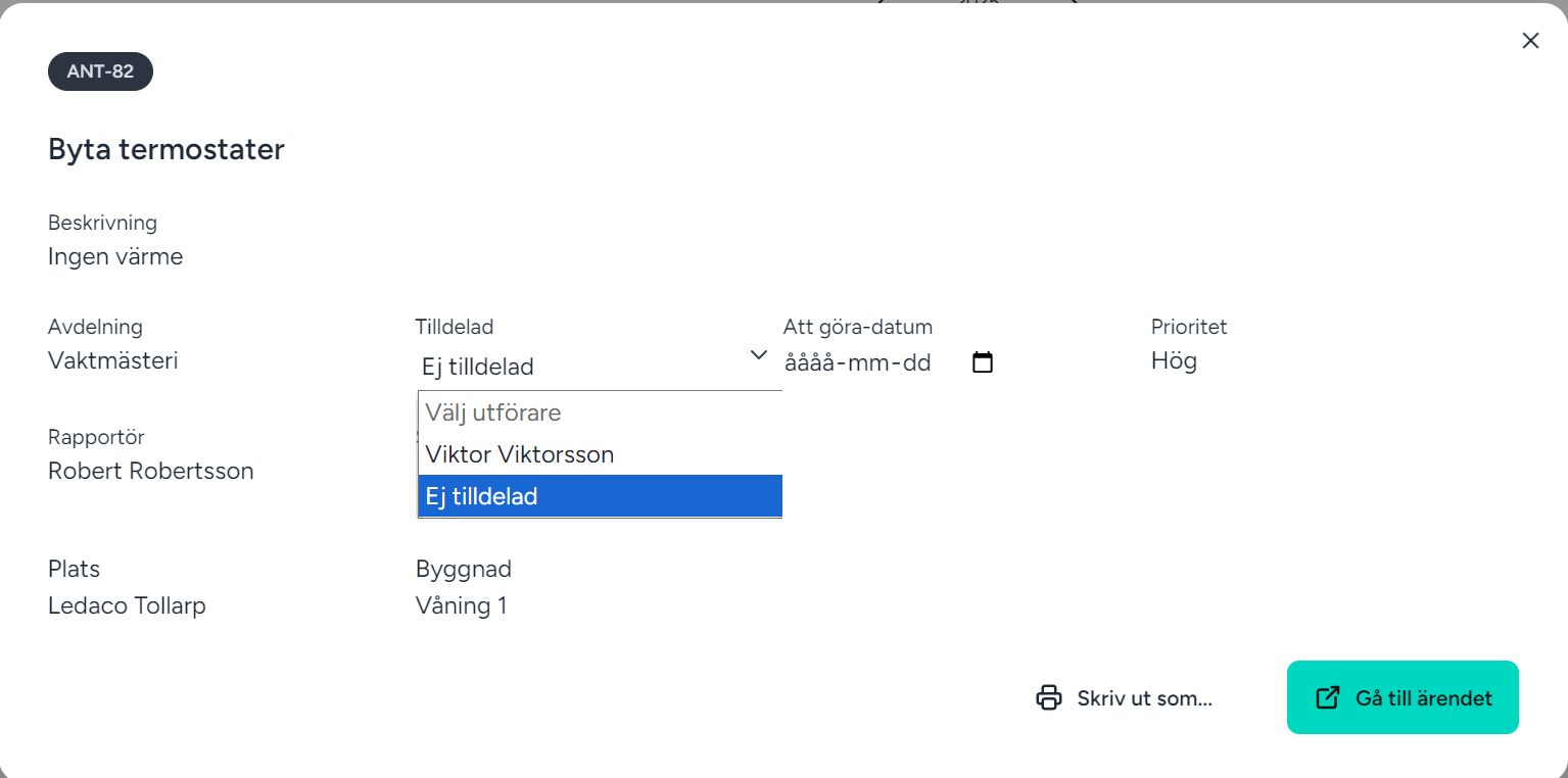 Byt utförare från planeringsvynNu kan du enkelt byta utförare direkt från modalen när du klickar på ett ärende i planeringsvyn.