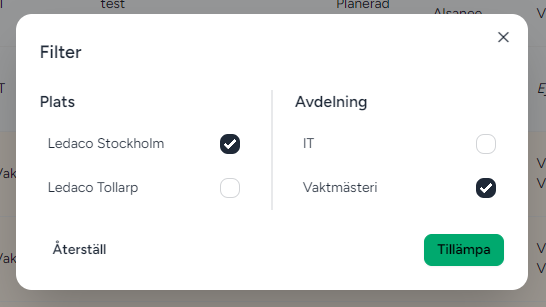 Bättre filter i webbgränssnittetVi har genomfört en förbättring av vårt filter som nu ger användarna möjligheten att filtrera data på flera platser och flera avdelningar samtidigt.