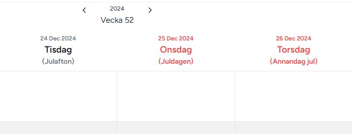HelgdagarEtt praktiskt tillägg i planeringsvyn är en funktion som markerar helgdagar direkt i kalendern. Detta gör det enklare att planera och undvika att planera under röda dagar.